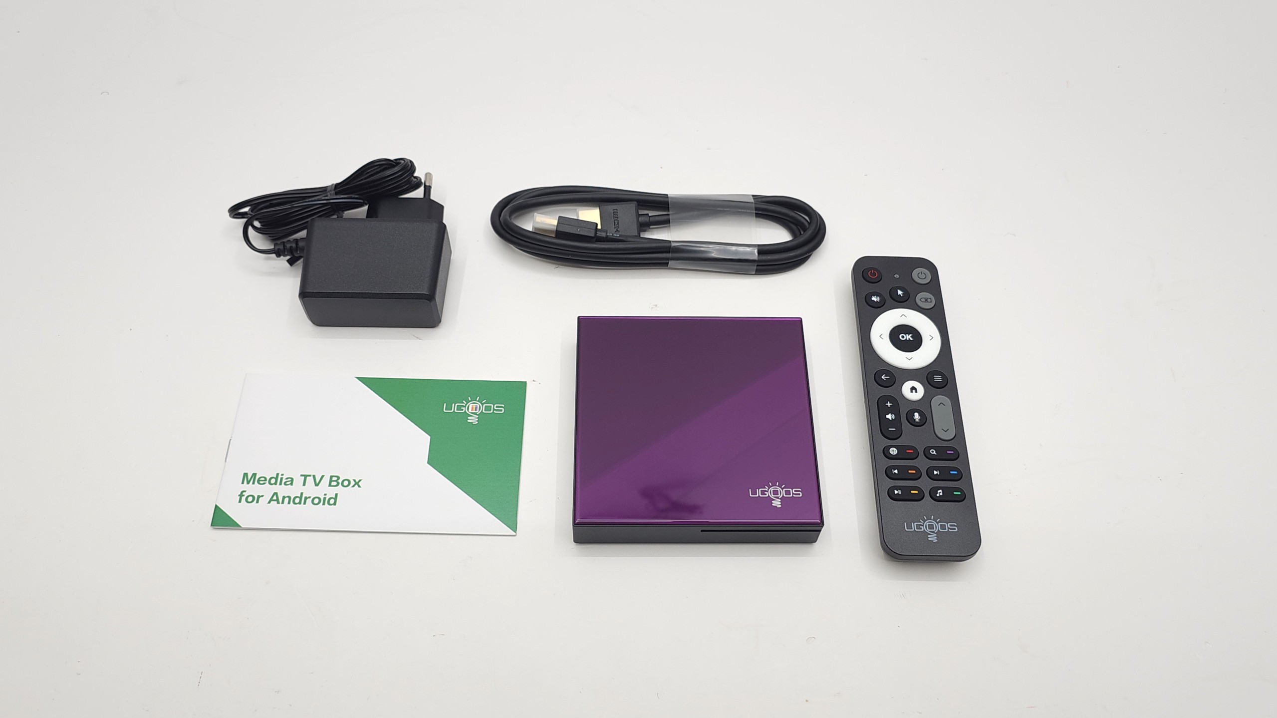 - Package contents: Ugoos SK4 Box, BT Remote Control; Power Adapter; HD Cable; English User Manual